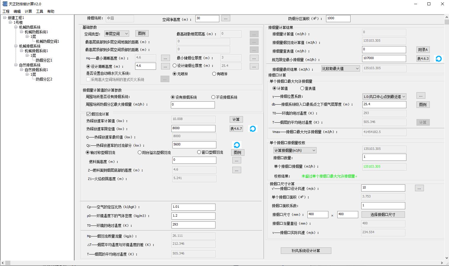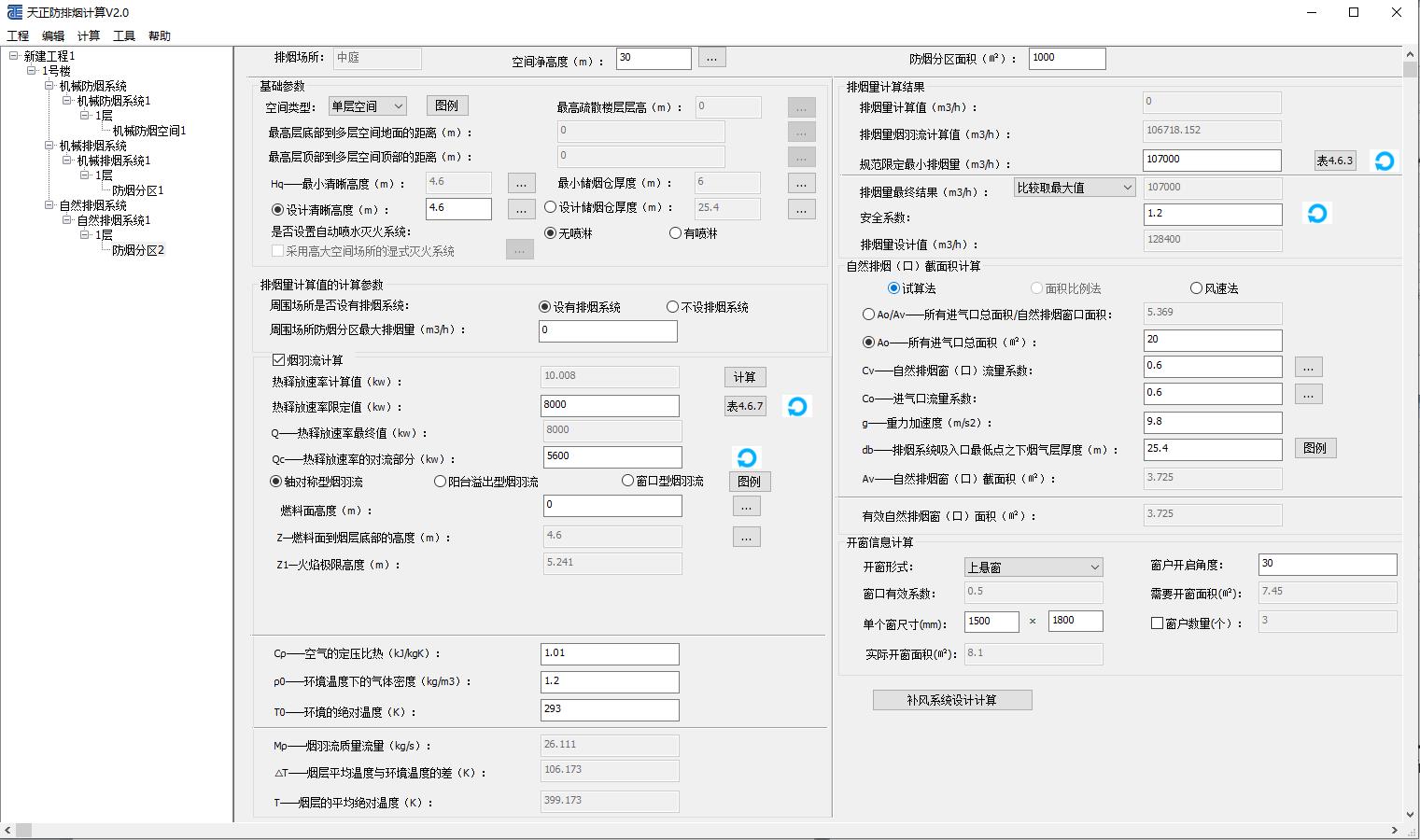 根據(jù)建筑物情況,依據(jù)建筑防煙排煙系統(tǒng)技術(shù)標準進行防排煙計算。