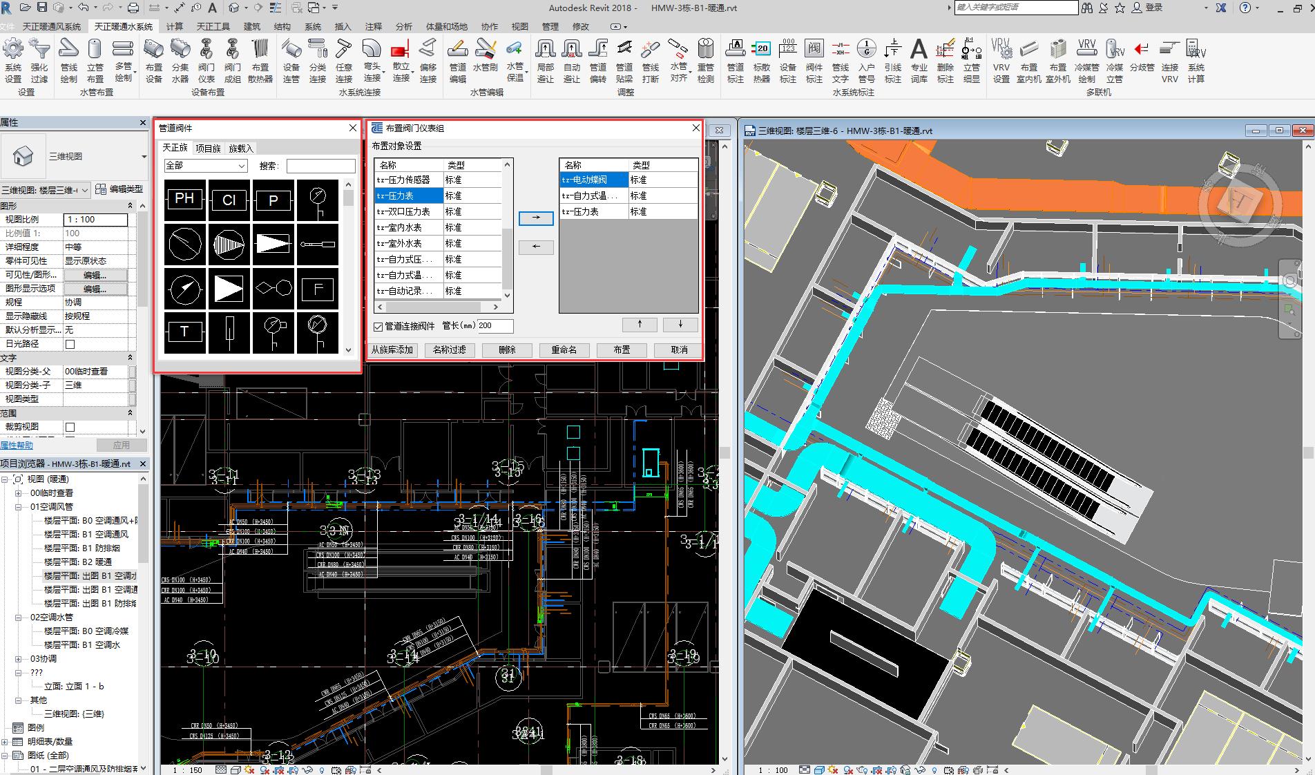 提供水管閥件、風機盤管、冷卻塔、空調(diào)器等設備庫,支持設備的選型、布置;提供散熱器庫,支持布置散熱器;支持閥門的成組布置。