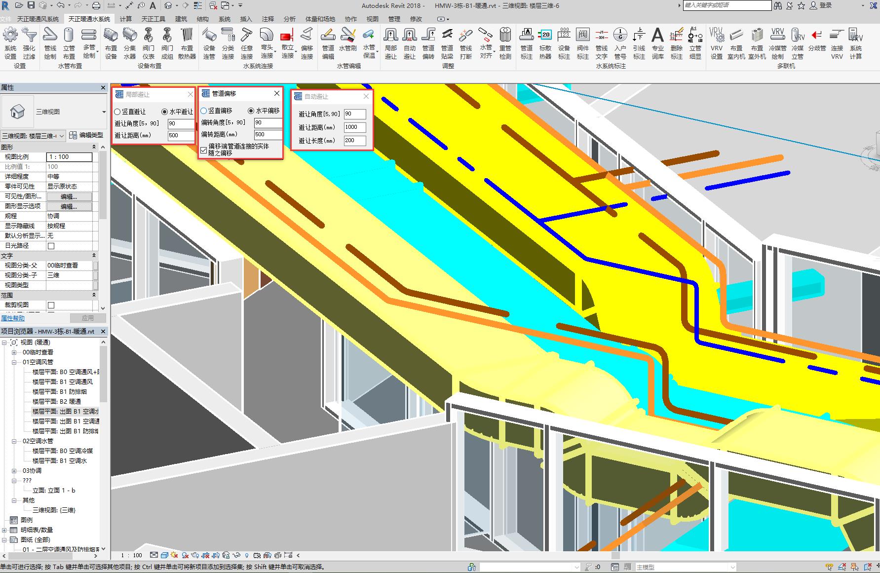 提供管線的避讓操作;支持風管貼梁、貼板布置;支持風管對齊、對正操作;支持風系統(tǒng)選取及調(diào)整操作。