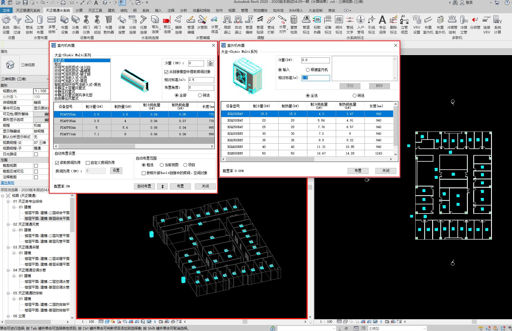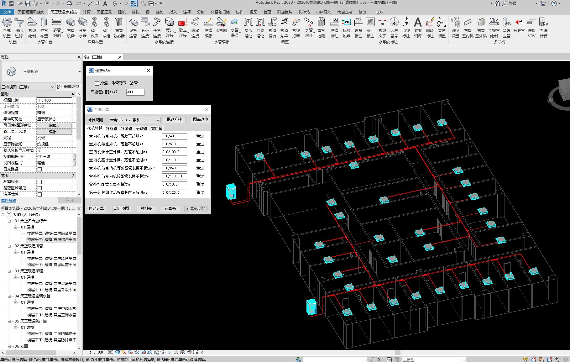多聯(lián)機模塊:支持多聯(lián)機的管道布置、設備選型、管道與設備連接、系統(tǒng)計算等功能。