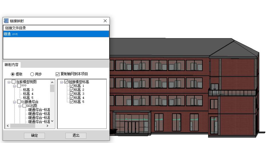 鏈接管理:支持批量鏈接Revit項目文件。本命令支持選擇多個rvt文件一鍵創(chuàng)建鏈接關系,默認當前文件與鏈接文件之間的對齊關系為原點到原點。支持將鏈接文件中軸網(wǎng)與標高映射到當前文件中,并隨鏈接文件更改而更新。