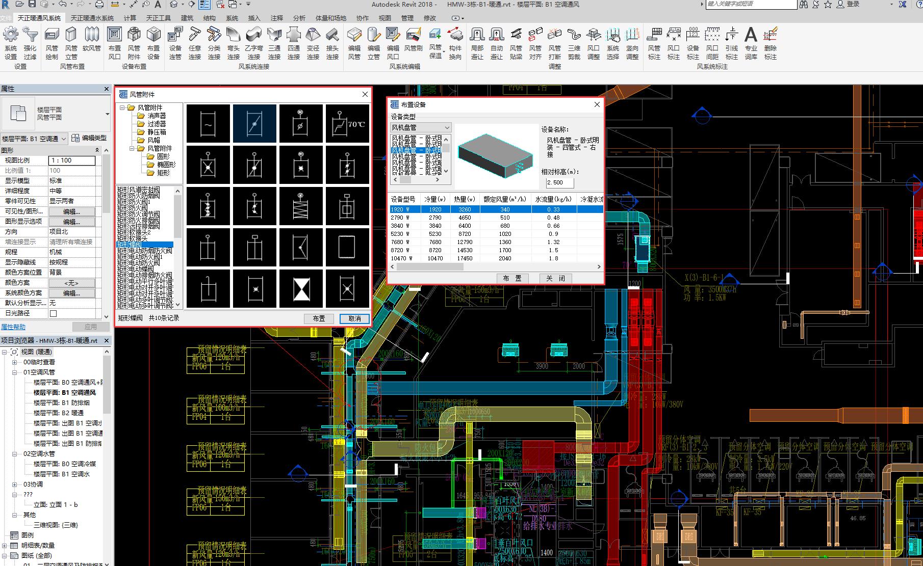 提供風口、風閥、風機盤管、風機等設備庫,支持設備的選型、布置,支持支吊架的布置。