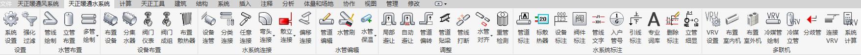 天正暖通水系統(tǒng)按照專業(yè)的設計流程分為設置、水管布置、設備布置、水系統(tǒng)連接、水管編輯、調(diào)整、水系統(tǒng)標注、多聯(lián)機等模塊。支持管線和立管的繪制,并可多管繪制、沿墻繪制。支持設備連管、散干\立連接、管線互連。支持對既有設備、管線的參數(shù)、位置關系進行編輯。支持對管線、設備等進行標注。支持多聯(lián)機系統(tǒng)的設備布置、連接、計算及標注等。