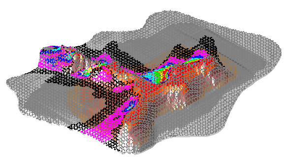 等高標注: 是對優(yōu)化計算的結果通過文字標注和顏色控制來直觀反映建筑物本身的高度情況。