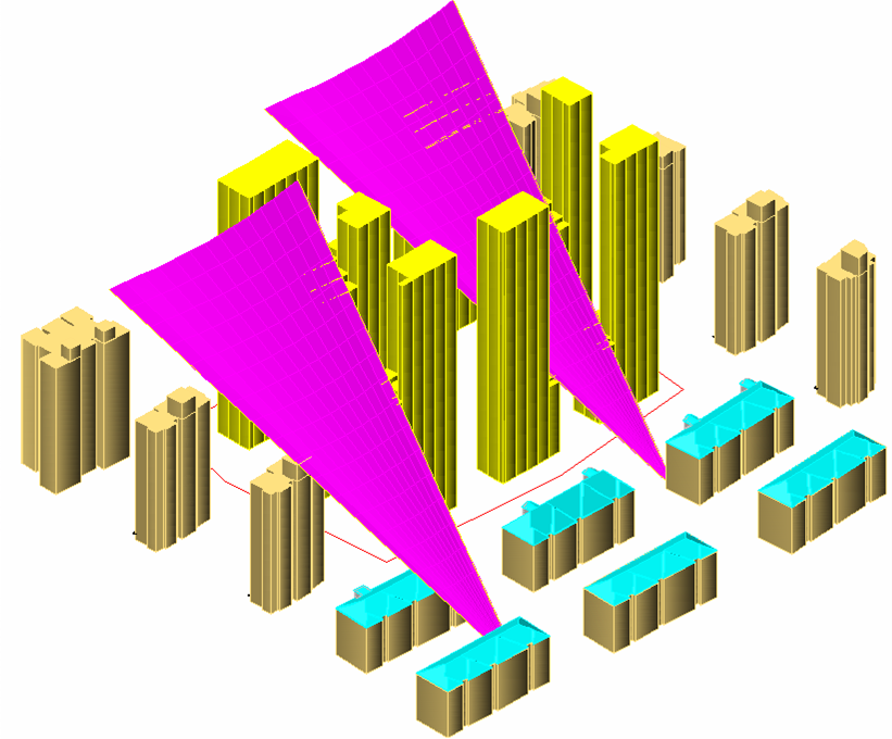 光線切割:對切割器或光線圓錐范圍內的遮擋建筑部分進行切割,用于調整擬建建筑三維體塊大小。