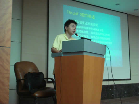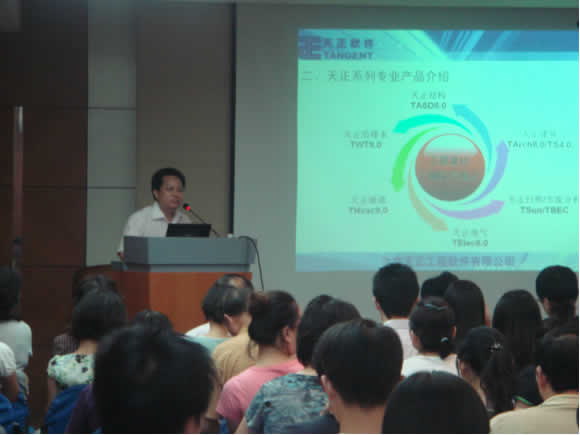 在協(xié)會領導、設計單位一線信息建設主管的報告后,天正公司的代表給大家進行了新版本的演示。通過天正公司資深工程師——張翔工程師的演示,與會的建筑工程師被天正建筑TArch8.0/TS4.0新版本更人性化的設置、新穎的樓梯設計、配合房產面積統(tǒng)計研發(fā)的面積統(tǒng)計等新功能、新技術所深深吸引。