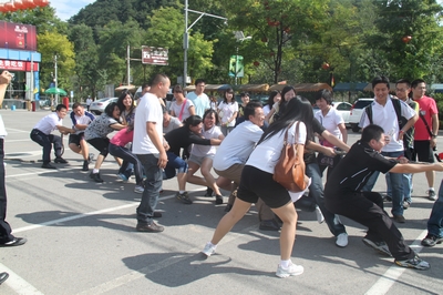 開幕式比賽項(xiàng)目有:九人十足、拔河、爬山、乒乓球接力。