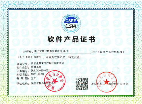 2023年2月28日,經陜西省軟件行業協會評估,西安金昌譽醫療科技有限公司榮獲軟件產品證書,我公司自主研發的:“電子脊柱儀數據采集系統V1.0”讓金昌譽軟件的知識產權庫上再添新成員,在軟件研發、科技創新和規范化管理等方面又邁上了一個新臺階獲得此殊榮,是實力的體現更是我們專注前行的動力:我們將不斷開拓市場,提高企業核心競爭力;進一步加強公司技術創新能力以及科技成果轉化能力!在此強大的基礎上通過不斷的努力、創新,為產品及醫療軟件研發與完善更好的新型軟件,為客戶提供信息化、可視化、智能化的醫用設備解決方案。