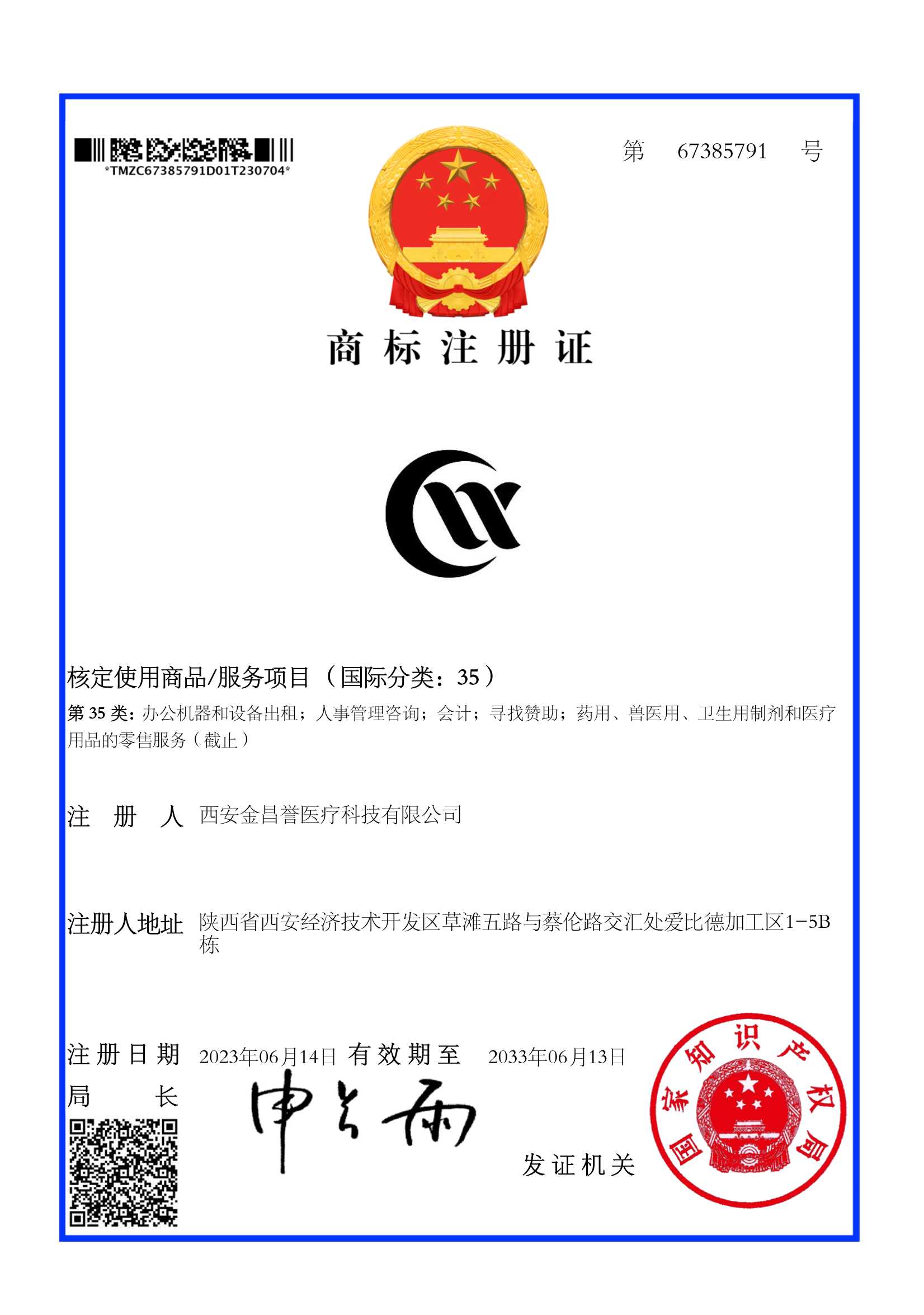 熱烈祝賀金昌譽醫療商標注冊證下發