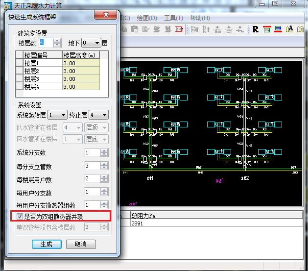 根據(jù)各層平面數(shù)據(jù)自動生成各類采暖形式系統(tǒng)圖,所有平面標(biāo)注信息可自動帶入系統(tǒng)圖,輕松實現(xiàn)了平面圖和系統(tǒng)圖上散熱器片數(shù)、管徑等標(biāo)注信息一一對應(yīng),沒有遺漏,極大減少設(shè)計人員校核圖紙的工作量。