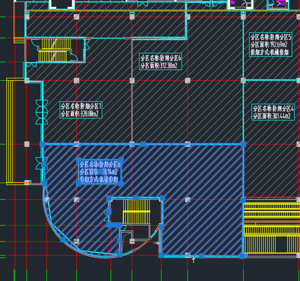 支持對圖面既有的防煙分區(qū)實體進行單個或者批量編輯,對參數(shù)值進行修改;支持拖動圖面防煙分區(qū)的夾點,填充、面積等自動刷新;支持拖動標(biāo)注文字的夾點,移動標(biāo)注位置,并自動更新文字邊框以及背景屏蔽效果 。