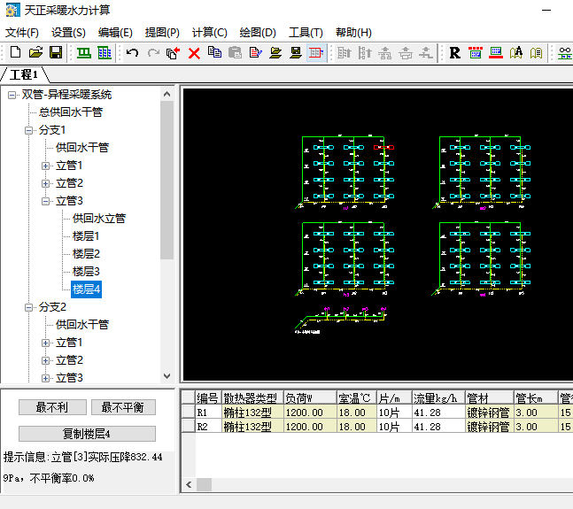相輔靈活的右鍵菜單編輯功能,可方便地繪制單管側(cè)接、單管下接、雙管側(cè)接、雙管下接等平面圖;管線交叉自動遮斷。可一鍵繪制多層多立管供暖原理圖、根據(jù)平面圖快速生成系統(tǒng)圖。