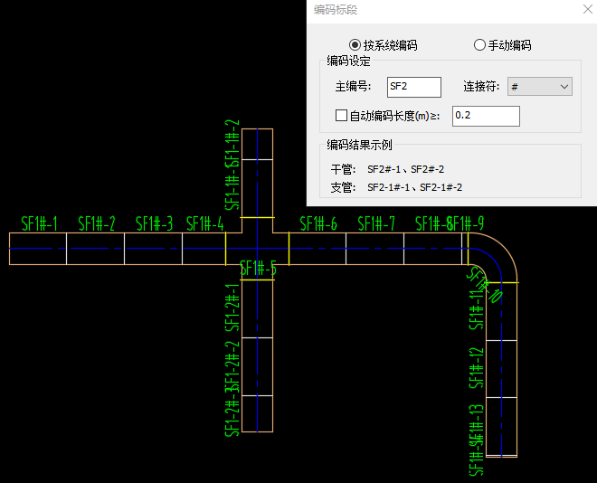 【風(fēng)管標(biāo)段】模塊,【標(biāo)段設(shè)置】支持設(shè)置風(fēng)管拆分為標(biāo)準(zhǔn)長度風(fēng)管的標(biāo)準(zhǔn)件規(guī)格,提供不同的拆解件生成方式,支持按管材或者按自定義規(guī)則;【風(fēng)管標(biāo)段】支持將使用天正繪制的風(fēng)管,按照標(biāo)段設(shè)置中設(shè)定的拆解規(guī)則以及對應(yīng)的標(biāo)準(zhǔn)長度,拆解為多段標(biāo)準(zhǔn)長度風(fēng)管;【風(fēng)管捕捉】支持繪制風(fēng)管時捕捉標(biāo)準(zhǔn)長度點;【編碼標(biāo)段】支持將執(zhí)行過風(fēng)管標(biāo)段命令拆解為標(biāo)準(zhǔn)長度的風(fēng)系統(tǒng)或者風(fēng)管進行編碼;【標(biāo)注標(biāo)段】支持對標(biāo)準(zhǔn)長度的風(fēng)管,進行連續(xù)標(biāo)注;【輸出標(biāo)段】支持將已經(jīng)拆解為標(biāo)準(zhǔn)長度的風(fēng)管進行統(tǒng)計并輸出表格。