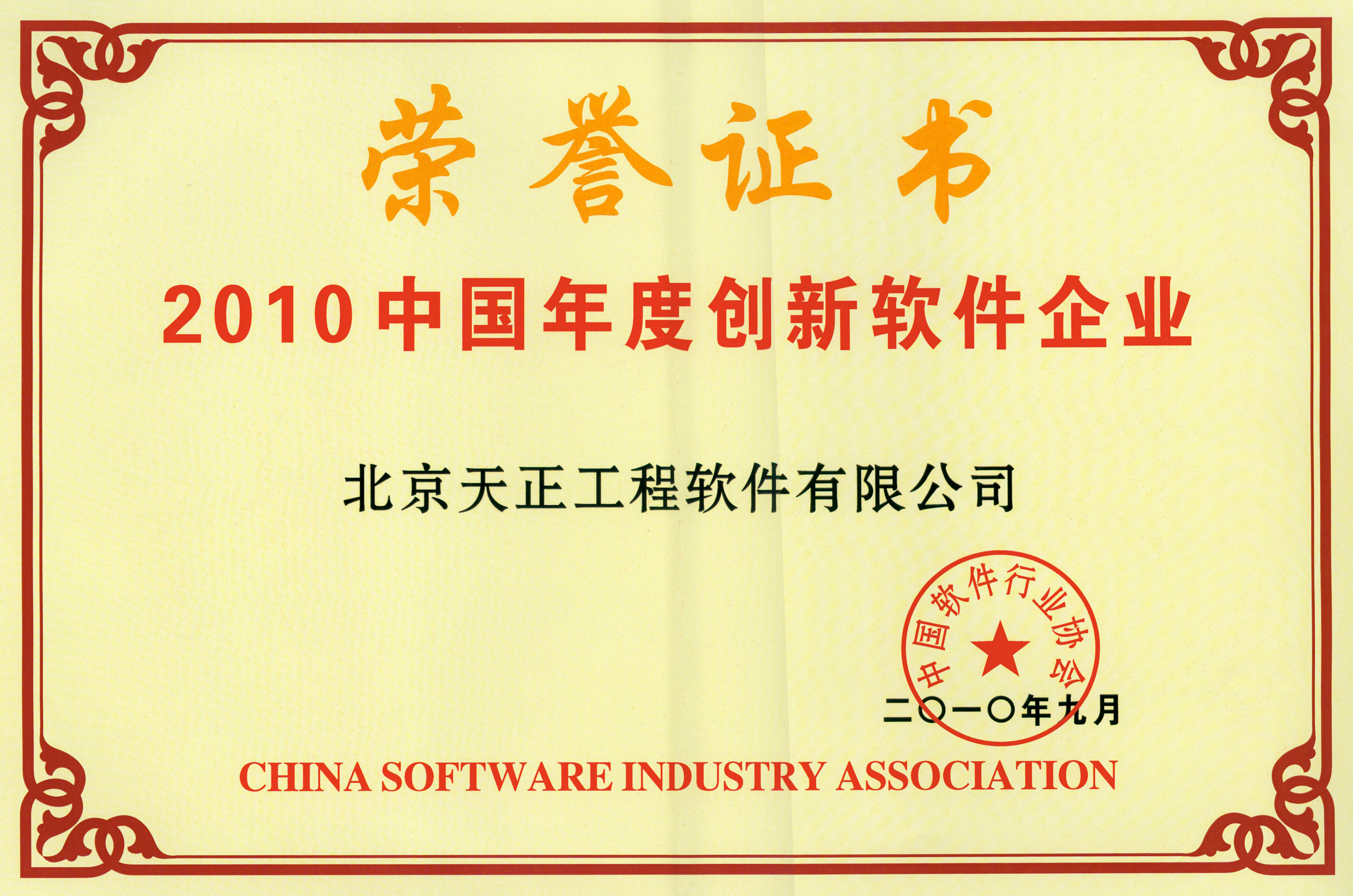 2010年93日,由工業(yè)和信息化部,中國(guó)軟件行業(yè)協(xié)會(huì)組織的中國(guó)軟件行業(yè)2010年度軟件創(chuàng)新企業(yè)頒獎(jiǎng)大會(huì)在江蘇南京舉行,天正公司作為勘察設(shè)計(jì)行業(yè)最具影響力的建筑專業(yè)系列軟件的供應(yīng)商,獲得2010年度軟件創(chuàng)新企業(yè)獎(jiǎng)。